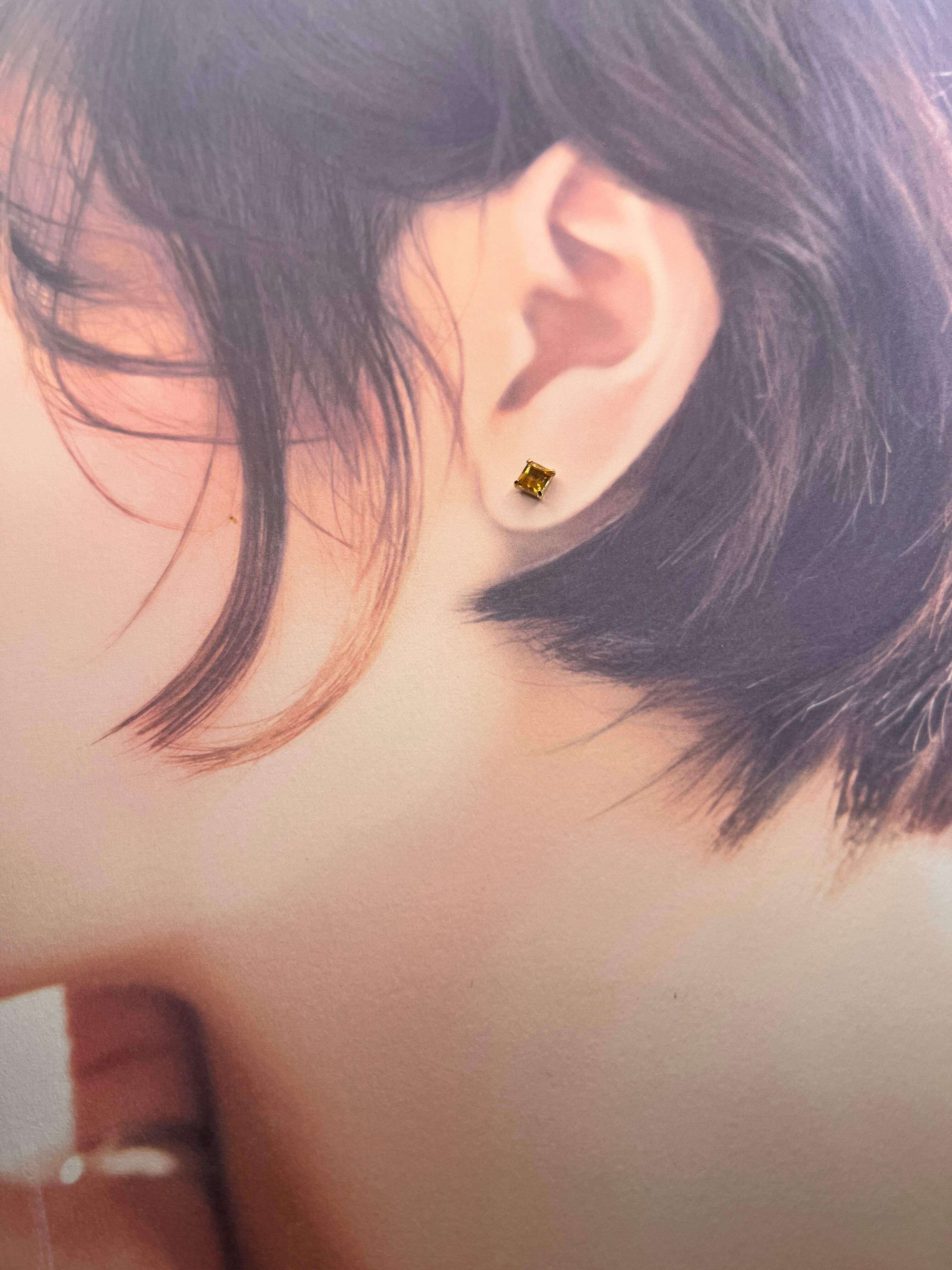 このピアスは、スクエア型のデザインが特長で、シンプルながらも存在感を放つ美しさがあります。