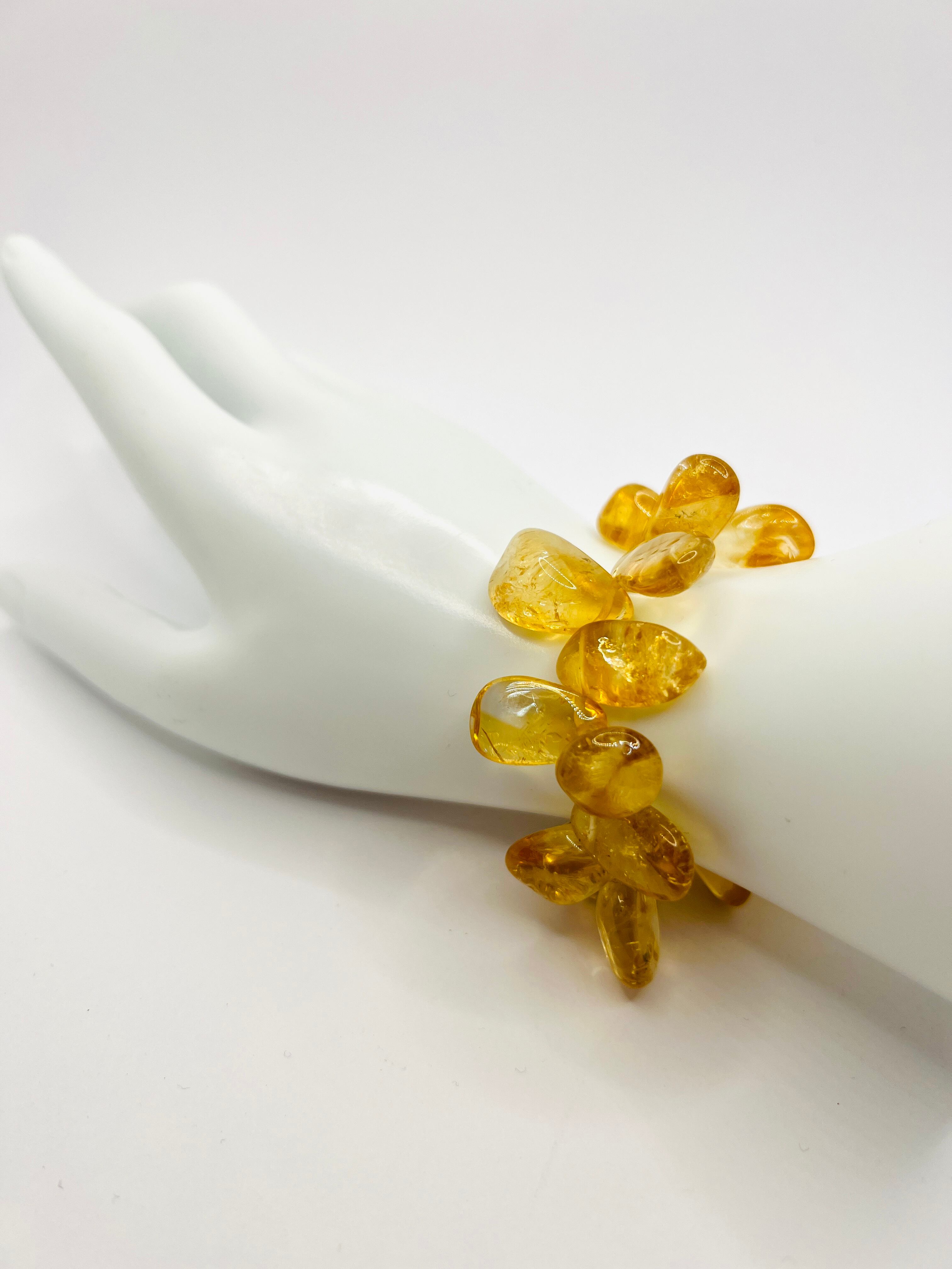 シトリンをふんだんに使った、花びらのレイのブレスのような型