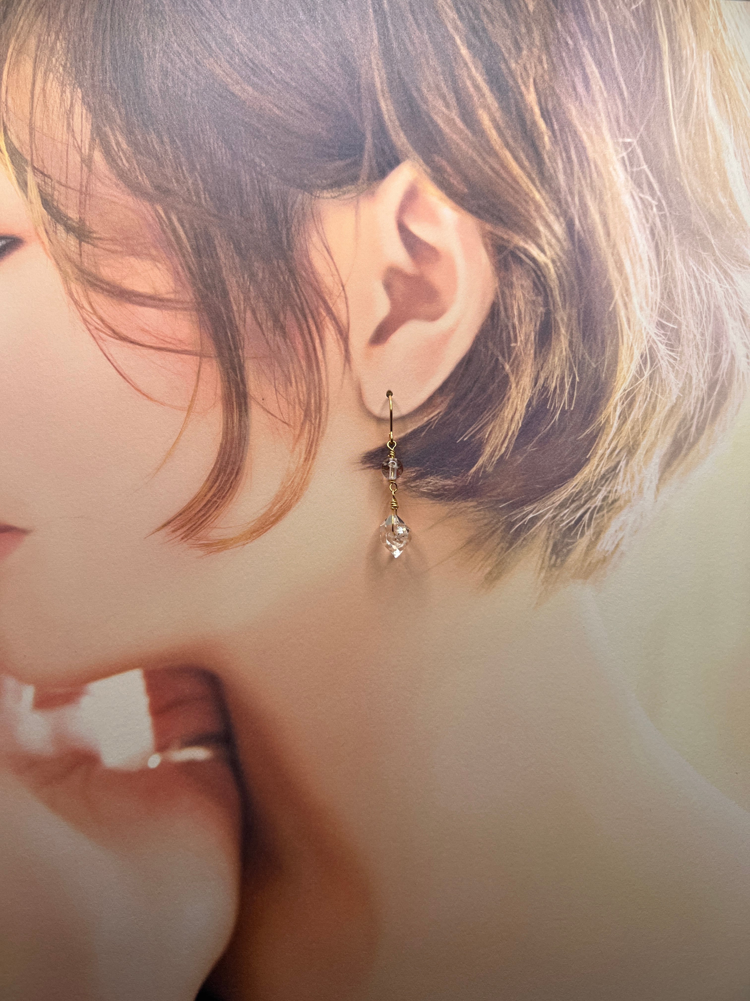 ショートタイプ ハーキマーダイヤモンド&ダンビュライト ピアス