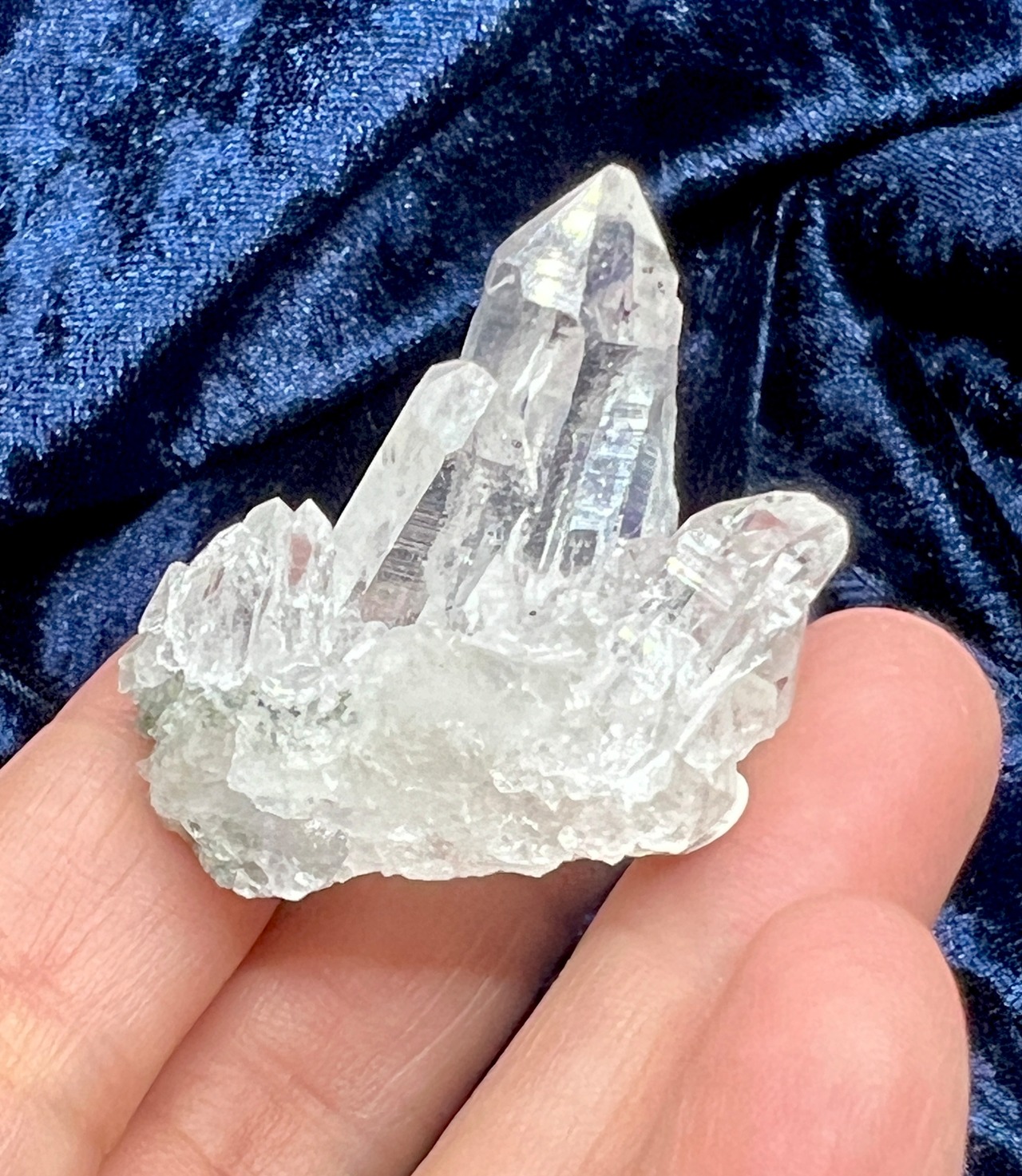クローライトが付いたこのクラスターは、独自の輝きと透明感を持ち、その神秘的な美しさが見る者の心を惹きつけます。